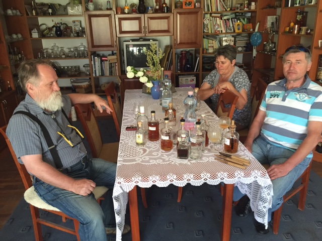 Lajos, his wife, and my wife's uncle tasting Gemenc Whiskies ...