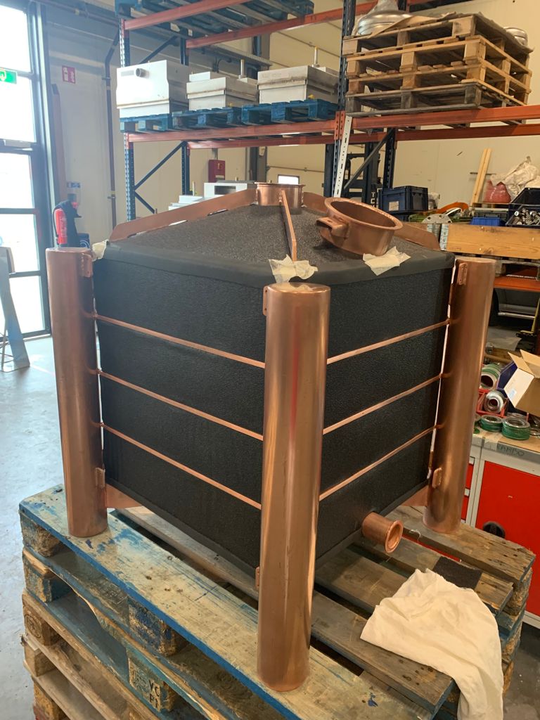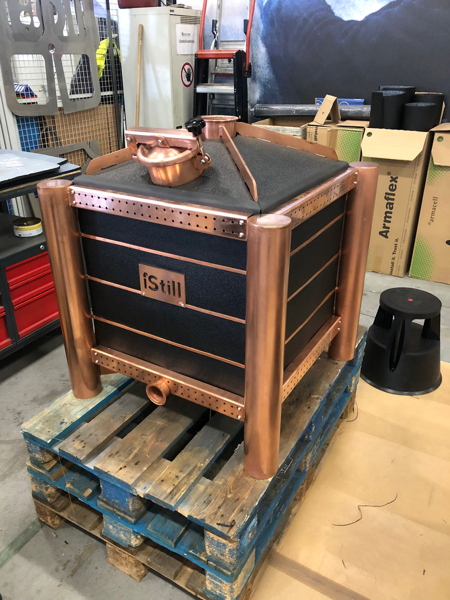 The work on the copper iStills is progressing nicely. Here is another update. Here's the boiler, insulated and all ...