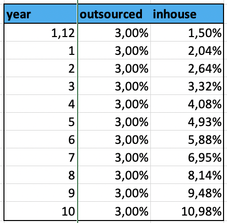 Craft Beer has been around for a decade longer than craft distilling. Their growth curve and our industry's growth curve match very well. The market share value of Craft Beer is currently around 12,5%. It is therefore expected to see the craft distilling industry grow with similar numbers. Given a 12% growth, year over year, a market share of 14% is obtainable within a decade. As follows: