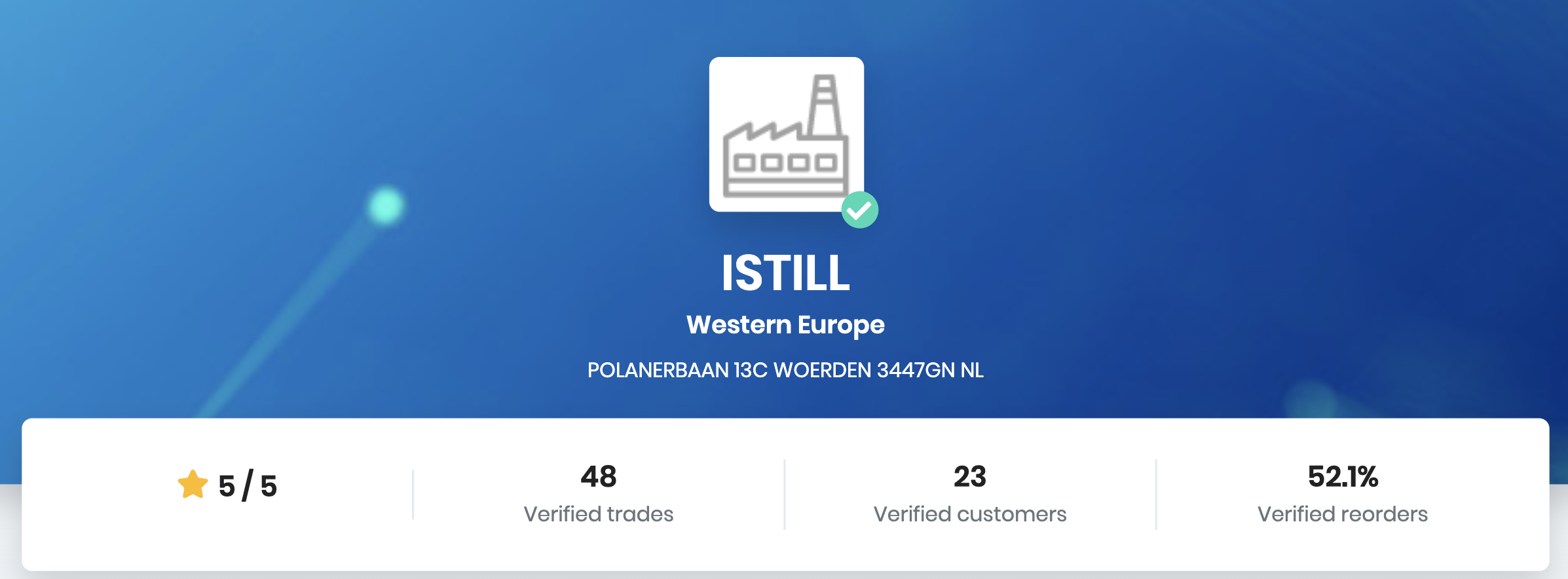 Matchory, the smart supplier database, after researching 23 customers and 48 purchases, ranked iStill with the maximum 5 out of 5 stars! They also established that 52.1% of the customers had already placed previous reorders. As founder and CEO of this amazing company, I want to congratulate my teams on doing an amazing job, each and every day!
