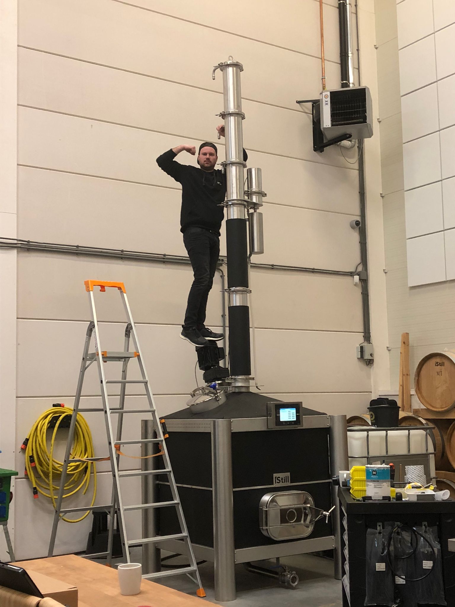 The iStill 1000 Hybrid is a fully automated 1000 liter / 260 gallon net capacity distillery. The iStill 1000 Hybrid can make every type of spirit: brandy, gin, rum, vodka, whisky, or liqueur. The unit as equipped underneath, with indirect heaters, Jet Propulsions Agitator System (J-PAS), and boiler radiator, can also mash and ferment.