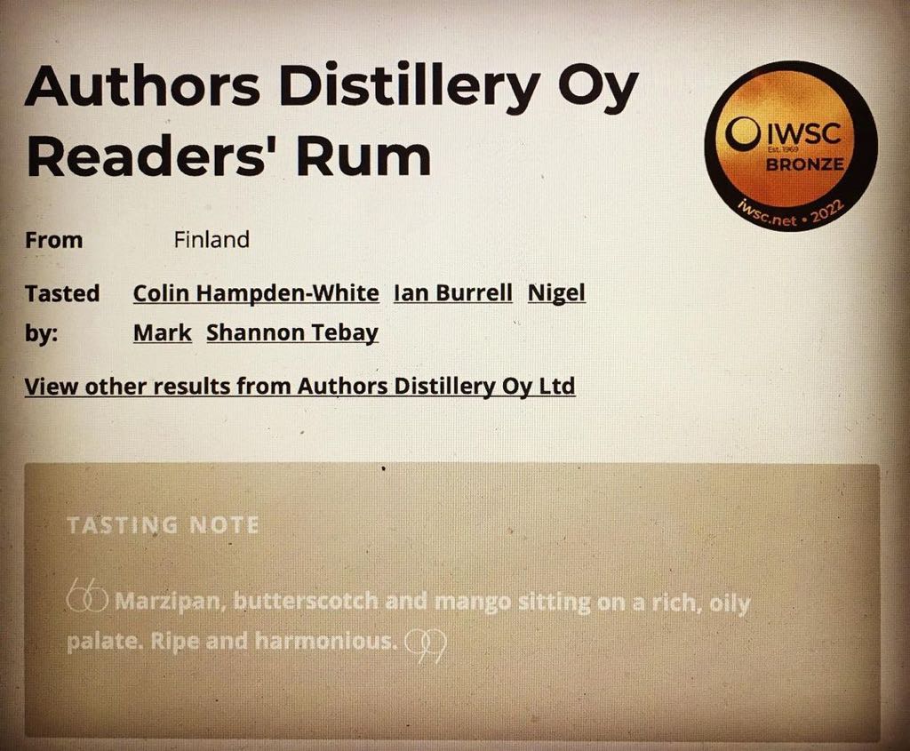 Congrats to Authors Distillery from Finland, Summerleas Distillery from Tasmania, Delrey from the Netherlands, and Valour & Lemaire Distillery from France. You make us feel very proud!