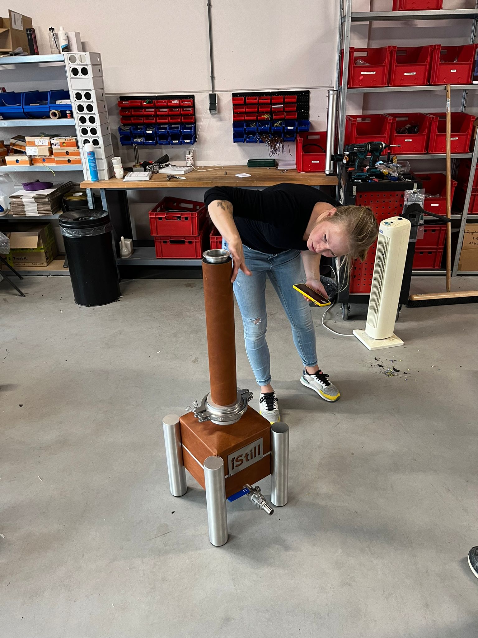We are currently "rawhiding" the first iStill Mini. The iStill Mini is first, because - as it is our smallest unit - it provides the biggest challenge both technically and as a business case. This first unit will be used in the upcoming iStill University Master Distillers Course, so that we can find out if leather provides the durable solution we are looking for. Saskia is almost finished, so the testing will start soon.