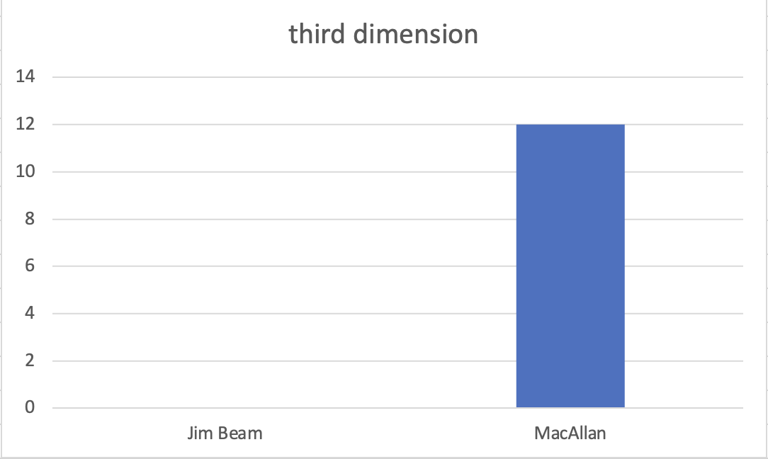Wow! The Bourbon basically has no back-end flavors. It is a two-dimensional product indeed. The MacAllan has a back-end and therefore a third flavor dimension. The outcomes depicted above are exactly as predicted by the Holy Trinity of Distillation.