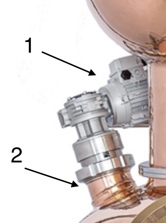 The goal of the agitator is to actively mix the boiler contents of your still. The mixing helps create a more even heat distribution and prevents scorching. As such, and depending on what you produce and how you produce, the agitator can be quite essential. Imagine trying to distill a grappa from fermented pomace without agitator, and you can easily imagine the disastrous outcome: the thick boiler content gets heated in an uneven way, resulting in scorched grape-skins, and an undrinkable spirit.