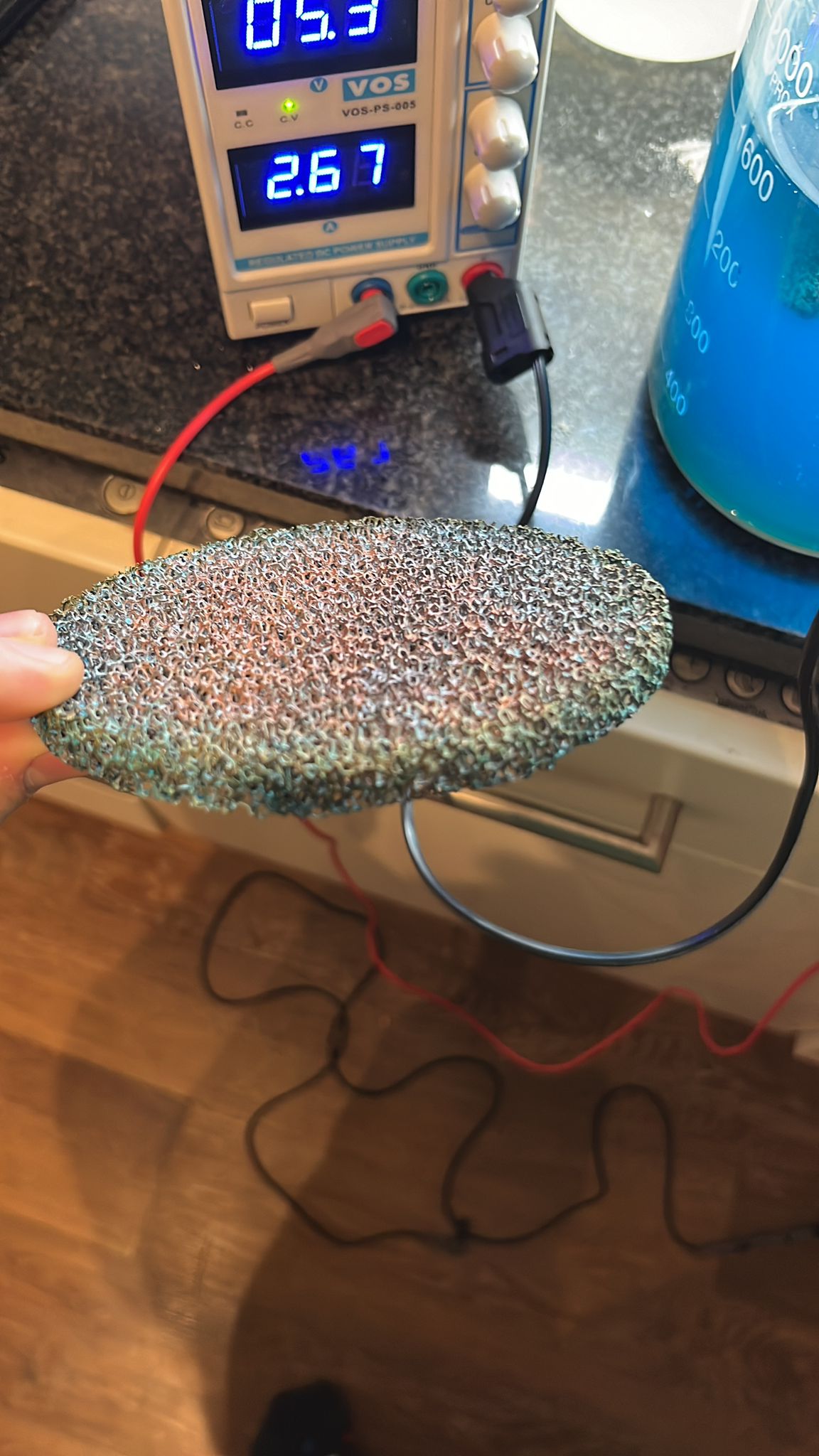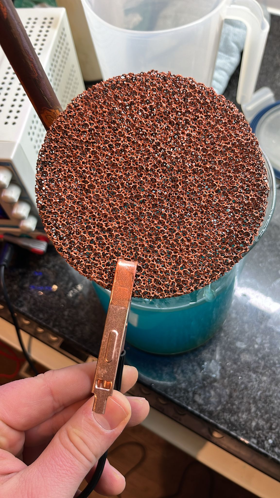 How? By use of electrolysis. The first step cleans out the brown, dirty, and oxidized copper. The second step replaces it with new copper! Yes, you heard that correctly: we are working on a protocol that completely rejuvenates your iStill Copper Waffle! More info on that in Q1 2024.