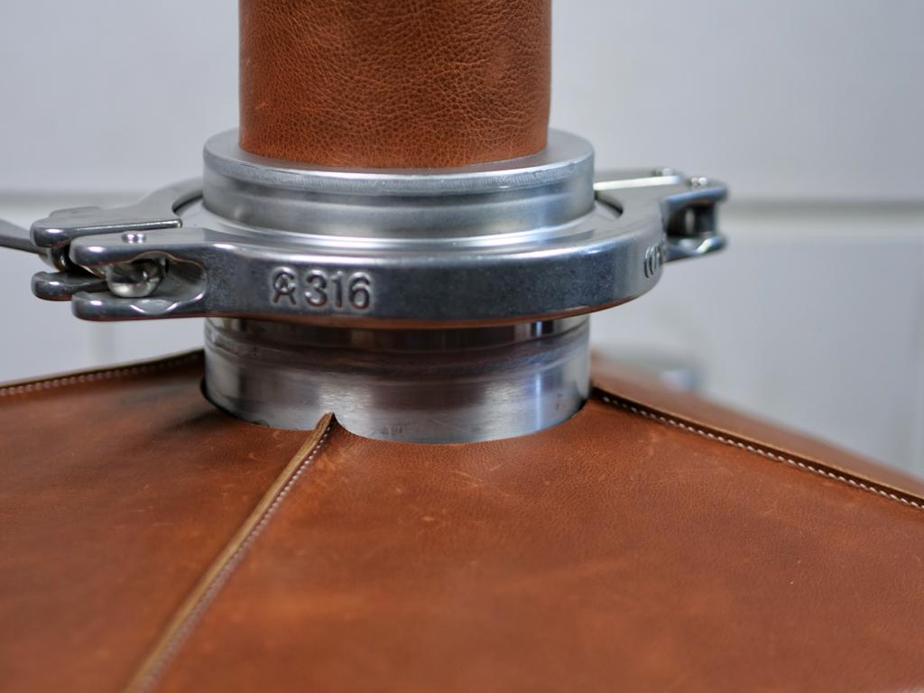 Last week we showed you pictures of the iStill Mini 10 and 50 liter boiler being upholstered. Here is the end result. Do you need a leather-uphostered iStill? Dunno. It does look kinda great. It smells good too! It is an amazing way to personalize your iStill ... and save another 5% on energy expenditure. We deliver the "Rawhide"-option to all iStills. Let us know if you are interested. For now ... here are loads of detail pictures. We hope you enjoy them as much as we did manufacturing these units!