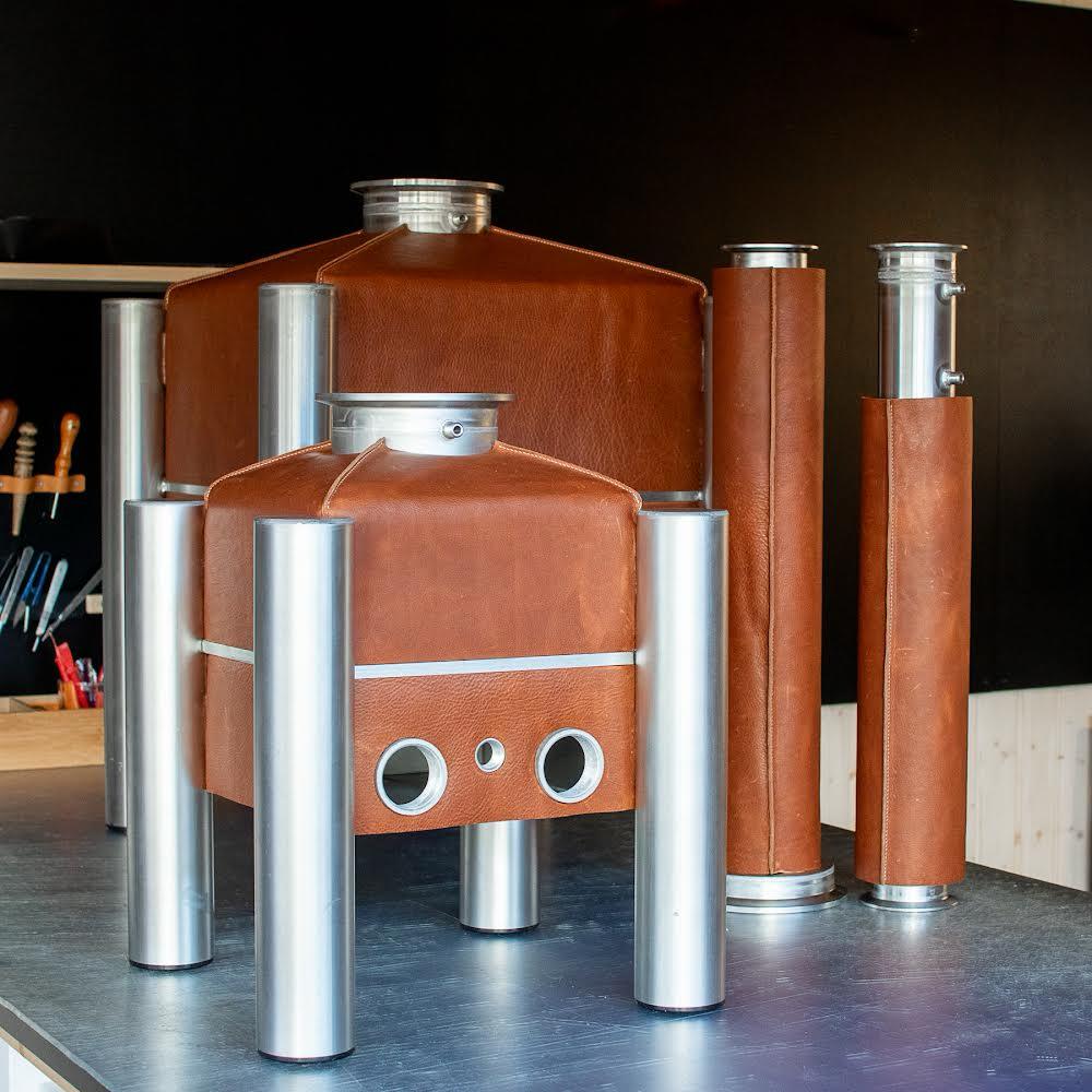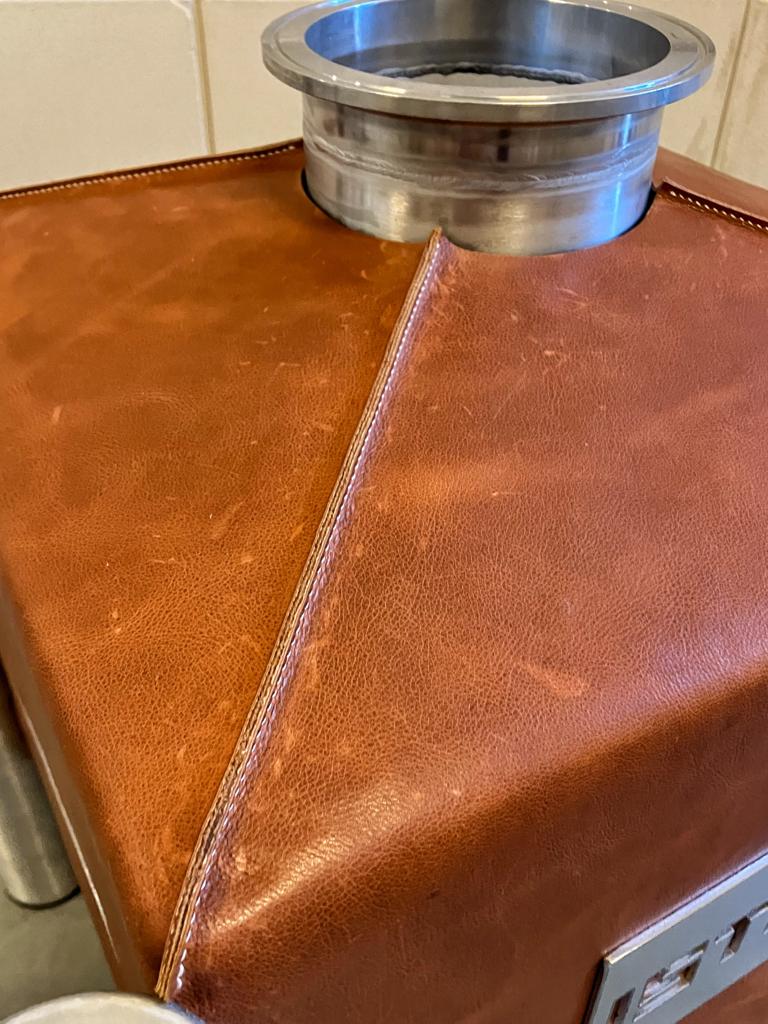 Last week we showed you pictures of the iStill Mini 10 and 50 liter boiler being upholstered. Here is the end result. Do you need a leather-uphostered iStill? Dunno. It does look kinda great. It smells good too! It is an amazing way to personalize your iStill ... and save another 5% on energy expenditure. We deliver the "Rawhide"-option to all iStills. Let us know if you are interested. For now ... here are loads of detail pictures. We hope you enjoy them as much as we did manufacturing these units!