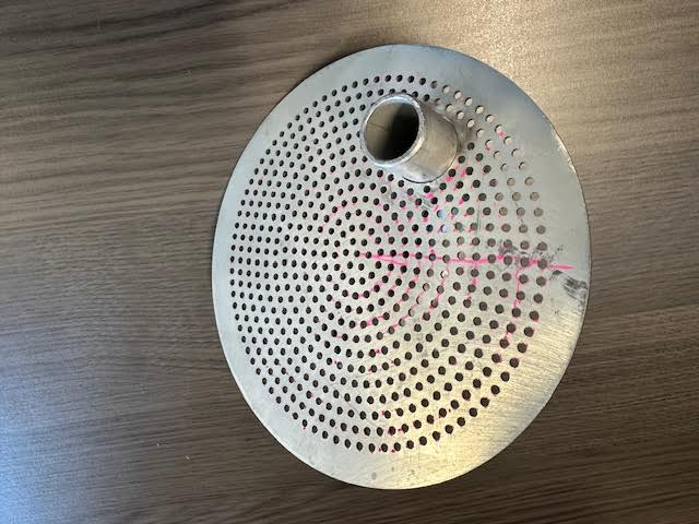 Perforated plate with one bigger hole to feed the downcomer ...