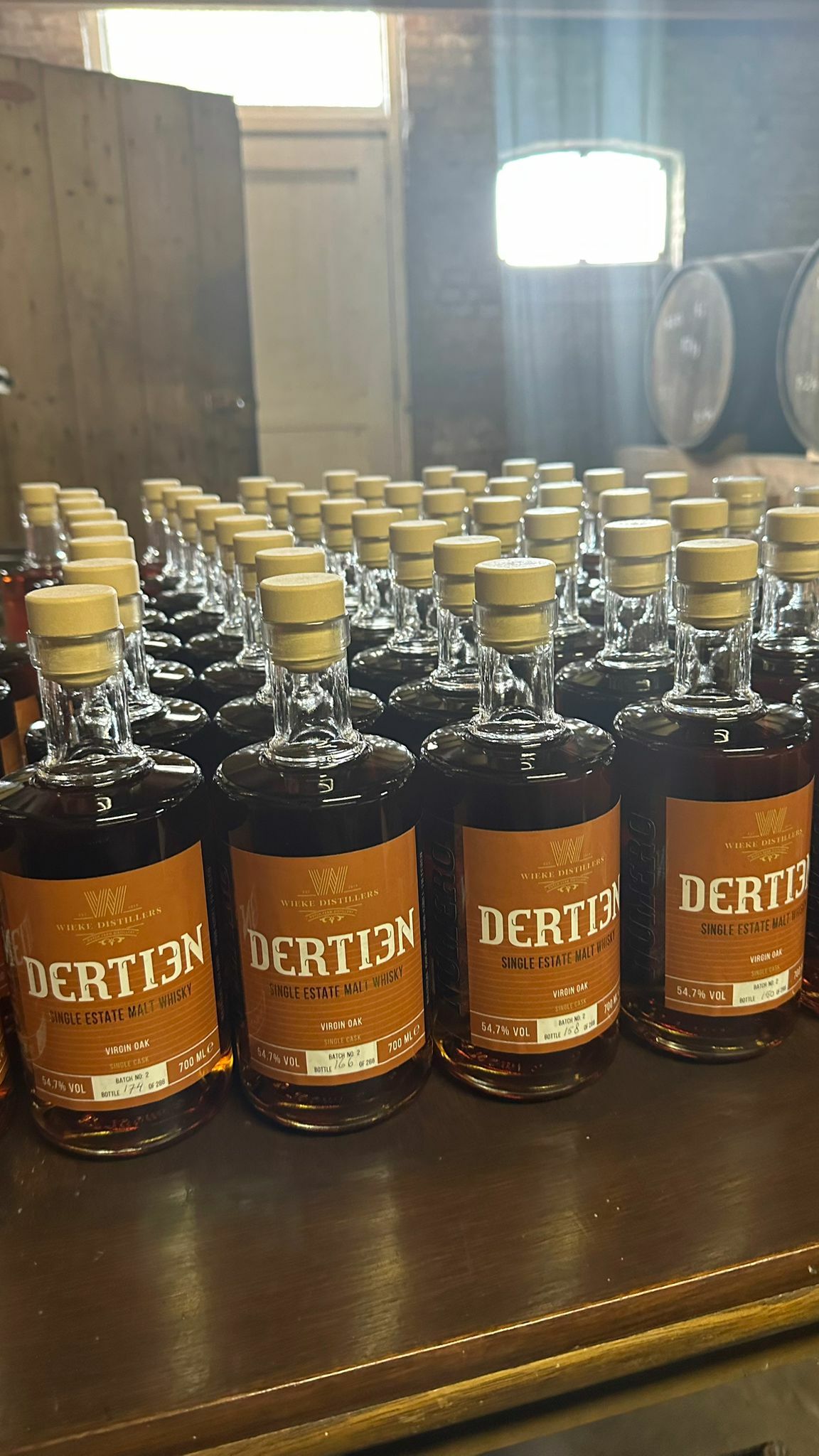 So your first batch, that you have on display here and sent us a bottle from, was put in cask in 2020 and made from the unpeated barley from Winterswijk?
